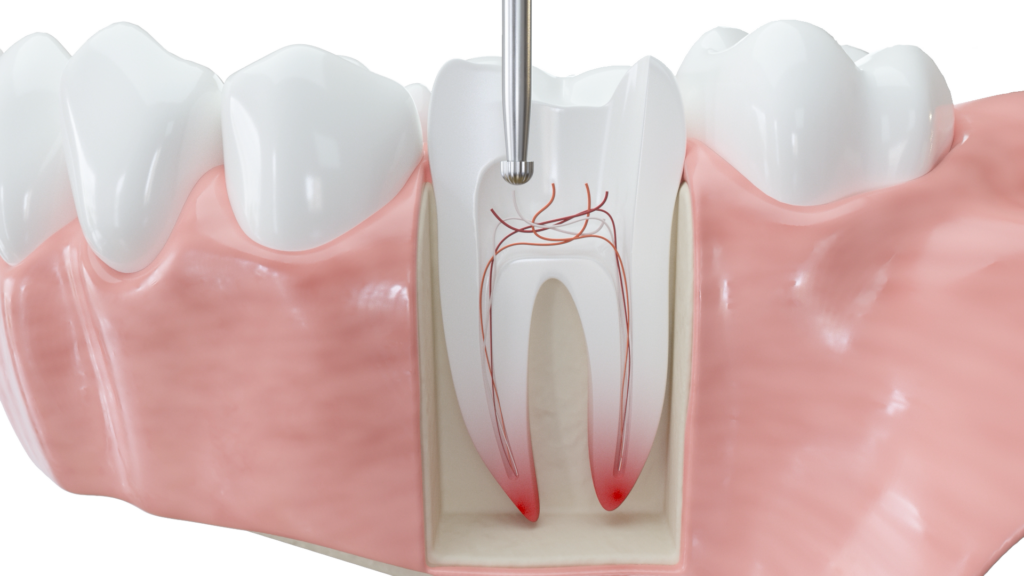 Nach der behutsamen Eröffnung des Zahns – gegebenenfalls unter örtlicher Betäubung – werden die Pulpa entfernt und die Kanäle gereinigt. Dies geschieht mit feinen Instrumenten aus Nickel-Titan und desinfizierenden Spülungen. Danach wird der Wurzelkanal mit einem biokompatiblen Medikament gefüllt, welches vorübergehend oder dauerhaft im Kanal verbleibt und die erneute Ansiedlung von Bakterien verhindert.